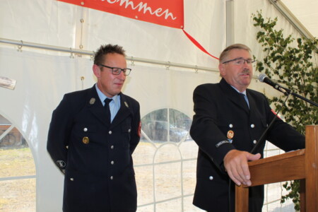 Vorstand Günther Schwarz unterstrich in seiner Begrüßung, dass die Freiwillige Feuerwehr nicht nur mit den Kernaufgaben Löschen, Retten, Helfen für das Dorf da sei, sondern auch gern Feste für die Bevölkerung ausrichte, insbesondere die Kirchweih und eben auch Ehrenveranstaltungen wie diese. Er dankte ganz besonders den Feuerwehrfrauen für deren hochgeschätzten Einsatz im Verein. Auch die Jugendarbeit gehe in eine positive Richtung. Er übergab daher an die Mitglieder der Jugendfeuerwehr in Anerkennung auch deren Engagements eine Garnitur T-Shirts, die sofort übergestreift wurden.