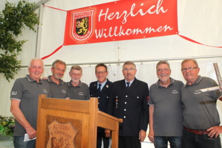 Auch die treue Mitgliedschaft einiger fördernden Mitglieder und deren langjährige ehrenamtliche Tätigkeit auf vielen Ebenen wurde gewürdigt, Werner Schwarz für 50 Jahre, Helmut Nerreter für 45, sowie Bernhard Zier, Johann Raab und Dieter Czerkus für 40 Jahre. Für weitaus mehr Mitgliedsjahre und jahrzehntelange ehrenamtliche Tätigkeit wurden die längst passiven Feuerwehrmänner ausgezeichnet: Ehrenvorstand Hermann Roth (65 Jahre Mitgliedschaft), Ehrenmitglieder Georg Roth und Robert Koch und Ehrenkommandant Christian Rupprecht (alle 65), Ehrenmitglieder Karl Löwe (60) und Hans Krauß (55), Alfons Lang (50) und Georg Bräunlein für 45 Jahre. Günther Schwarz ehrte