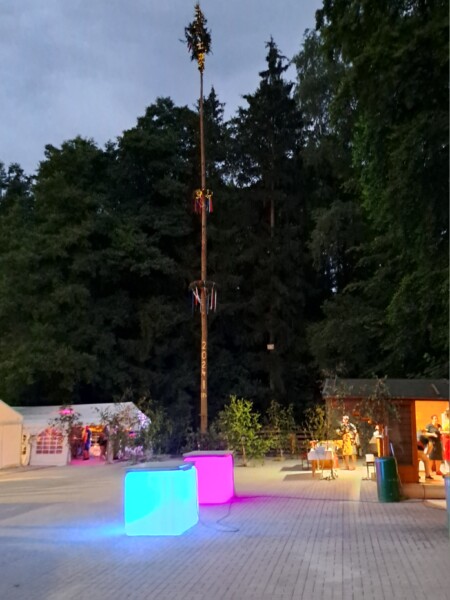LUDERSHEIM – Schönes Sommerwetter, gut gelaunte Gäste, beste Stimmung – kurzum die Ludersheimer feierten auch heuer wieder eine gelungene und harmonische Dorfkirchweih. Schon am Freitagabend bedienten die Kirchweihpaare ihre zahlreichen Gäste zum Bieranstich mit Bratwurst und Kraut. Der Samstagvormittag war geprägt von noch ausstehenden Vorbereitungen. So war der stattliche Kärwa-Baum rasch aufgestellt, hatten die veranstaltenden Feuerwehrler in Verbindung mit der Pflasterung des gesamten Festplatzes auch eine Schräge im befestigten Baum-Loch integriert. Seit den frühen Morgenstunden garte das rund 90 Kilo schwere Grillschwein im vereinseigenen Gasgrill, um es dann als Ludersheimer Spezialität gegen 18 Uhr von den Grillmeistern Werner und Christian Schwarz samt deren Helfern allen Gästen anzubieten. Für fetzige und rockige Unterhaltung sorgte am Samstag Michael Stiegler, bestens bekannt als Stimi. Er animierte vor allem die jungen Gäste zum „Bobfahren“ und Tanz auf den Tischen.