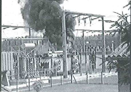 Zwei Wochen nach der Übergabe musste die Wehr zu einem Trafobrand im Umspannwerk ausrücken. Das Kühlöl des Trafos überhitzte und entzündete sich. Meterhoch schoss das brennende Öl in die Höhe. Mit Schaum und Wasser konnte das Feuer gelöscht und der Trafo gekühlt werden. Das kontaminierte Löschwasser– Öl- Gemisch wurde in gemauerten Wannen unter dem Trafo aufgefangen.