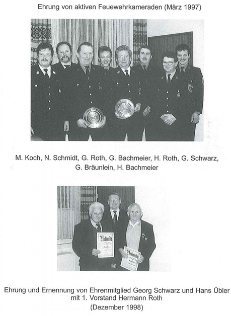 Gerhard Schwarz und Anfangs Werner Steindamm, später Georg Bräunlein, die die Fahne bis heute auf allen Feierlichkeiten mit Ehren tragen. Die Patenschaft übernahm die Nachbarwehr aus Röthenbach.