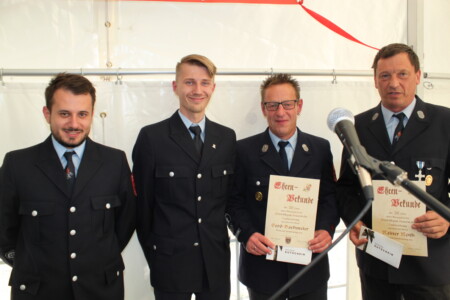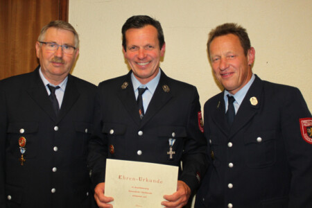 Die Verantwortlichen ernannten auch drei weitere Ehrenmitglieder. Alfons Lang, seit 50 Jahren dabei, war von 1972 bis 1993 Kassenwart und Schriftführer, dies teilweise in Personalunion und stand und steht dem Verein immer mit Rat und Tat zur Seite. Dieter Czerkus begann 1987 die Pressearbeit für die Feuerwehr und übte seit 1993 bis heute das Amt des Schriftführers aus. Dazu erstellte er zahlreiche Fotodokumentationen für den Verein. Werner Schwarz war bis zu seinem „Wegzug nach Winkelhaid“ aktiver Feuerwehrmann und ist seit 50 Jahren Vereinsmitglied. Mit seinem unermüdlichen Einsatz machte er sich für den Verein verdient, sei es als Chef am Saugrill oder als Herr über die Rollbraten bei nahezu jeder Veranstaltung. Mit handwerklichem Geschick stand er ebenso zur Verfügung wie in verschiedensten Vereinsgremien.