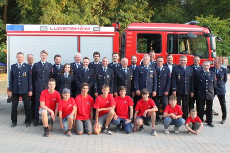 In Winkelhaid fand ein zweitägiger sogenannter BF-Tag statt. Jugendgruppen verschiedener Feuerwehren des Umkreises „spielten“ Aufgaben und Einsätze nach, die sonst die Berufsfeuerwehr (BF) erledigt. Alle Jugendlichen waren mit Begeisterung dabei. Die Teilnehmer der Ludersheimer Jugendfeuerwehr legten bei dieser Veranstaltung zuvor am Samstagvormittag auch die Prüfungen zur Jugendflamme ab. Alle sechs Teilnehmer bestanden mit sehr guten Ergebnissen und stellten sich dem Fotografen stolz vor dem „eigenen“ Feuerwehrauto.