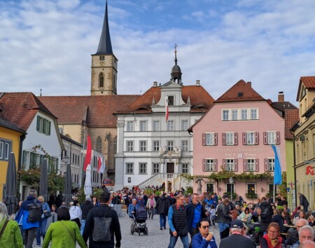 Nicht mehr weit bis Iphofen gesellten sich die Ausflügler dort zu einer großen Anzahl von Gästen auf dem Marktplatz zur „letzten Fuhre“. Hier ließ man den Tag bei Spezialitäten aus Keller und Küche ausklingen, bevor es mit der Bahn wieder Richtung Ludersheim ging.