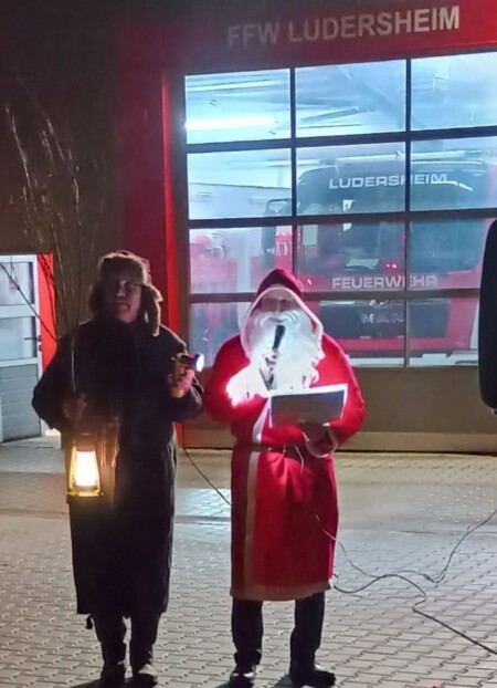 LUDERSHEIM – Auch kleine Weihnachtsmärkte haben ihren Charme. So luden die Verantwortlichen der Freiwilligen Feuerwehr Ludersheim Bewohner und auswärtige Gäste zum inzwischen etablierten Ludersheimer Glühweinmarkt ein, ein Markt der etwas anderen Art. Will man wahrlich nicht mit den Veranstaltungen anderer Orte mithalten, so konnten die Gäste auch her wieder das anheimelnde Flair am Festplatz genießen. An zwei Buden wurden heiße Getränke und leckere Thüringer Bratwürste angeboten und an mehreren mit Holzscheiten befeuerten Heiztonnen wurden die Besucher auch von außen gewärmt. Zudem erwarteten vornehmlich die kleinen Gäste später den Nikolaus. Der lobte in seiner in gelungenen Reimen vorgetragenen Ansprache die ehrenamtliche Tätigkeit der Ortswehr, die anerkannte Jugendarbeit und andere Aktivitäten, die der Feuerwehrverein den Ludersheimern anbietet, bevor die Kinder mit Süßem beschert wurden. Trotz zu Beginn regnerischen Wetters erlebten die Besucher einen schönen und gemütlichen Glühweinmarkt