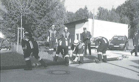 Zwei Wochen nach der Übergabe musste die Wehr zu einem Trafobrand im Umspannwerk ausrücken. Das Kühlöl des Trafos überhitzte und entzündete sich. Meterhoch schoss das brennende Öl in die Höhe. Mit Schaum und Wasser konnte das Feuer gelöscht und der Trafo gekühlt werden. Das kontaminierte Löschwasser– Öl- Gemisch wurde in gemauerten Wannen unter dem Trafo aufgefangen.